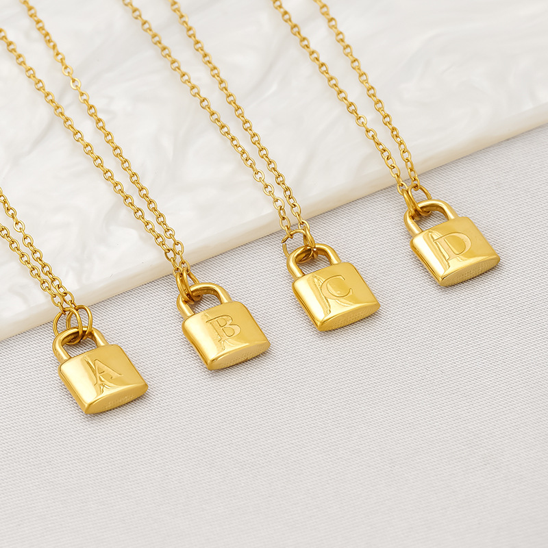 Amazon Cross-border New Simple Capital English 26 Letter Lock Necklace Lock Pendant Necklace Girls' First Jewelry