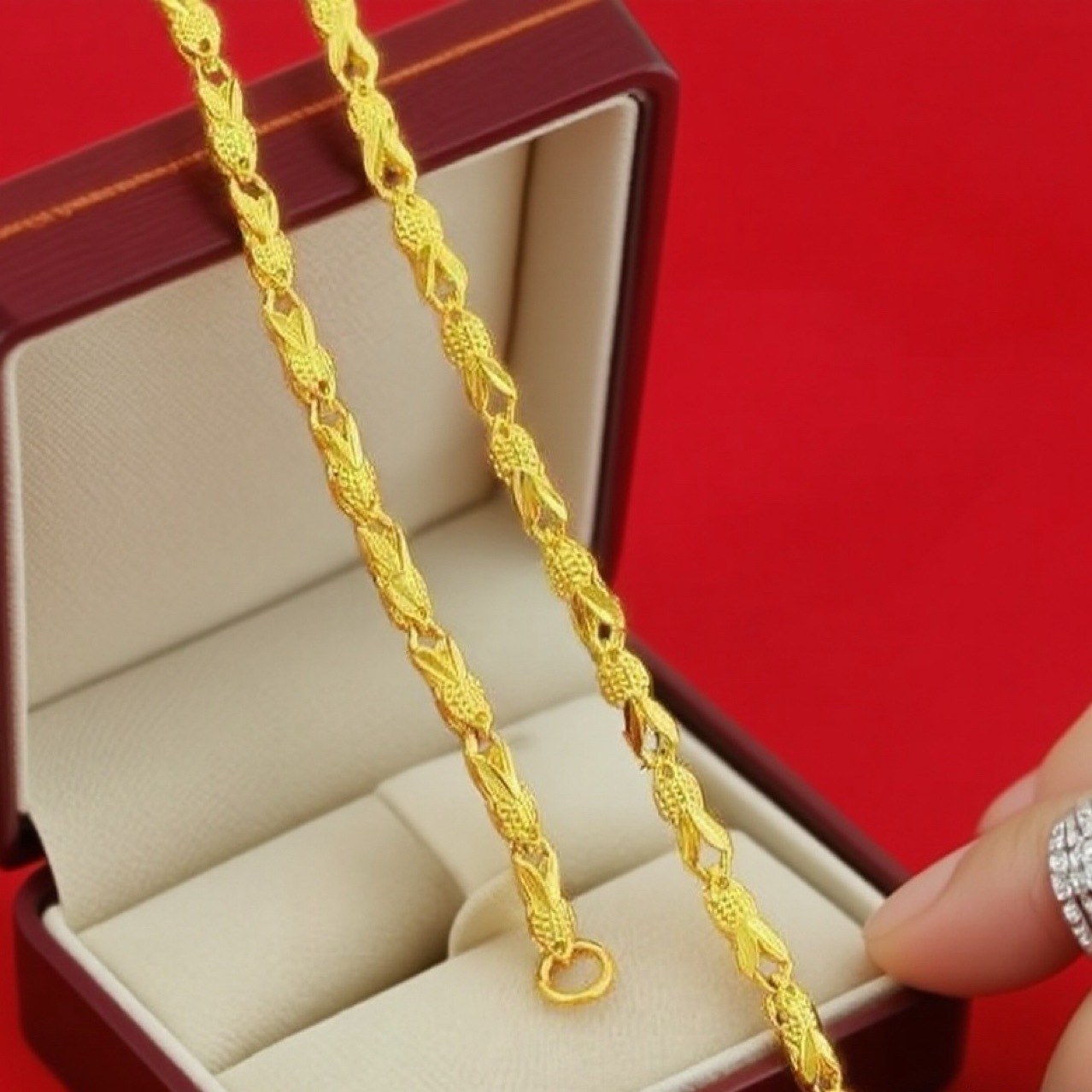 Authentic Vietnamese Sand Gold Necklace for Girls, Versatile Sand Gold Necklace, Sand Gold Small Fish Chain, Ingot Chain, Gift for Wife