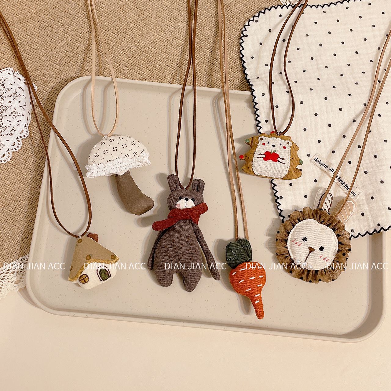 New Korean Style Artistic All-match Children's Necklace Cute Cartoon Fabric Bear Rabbit Mushroom Girl's Necklace Hanging Neck