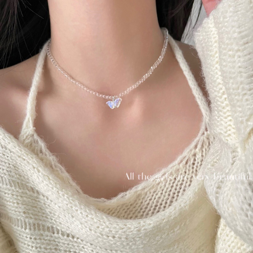 Spring and Summer new colorful crystal beaded necklace butterfly pendant resin young girl's clavicle chain necklace