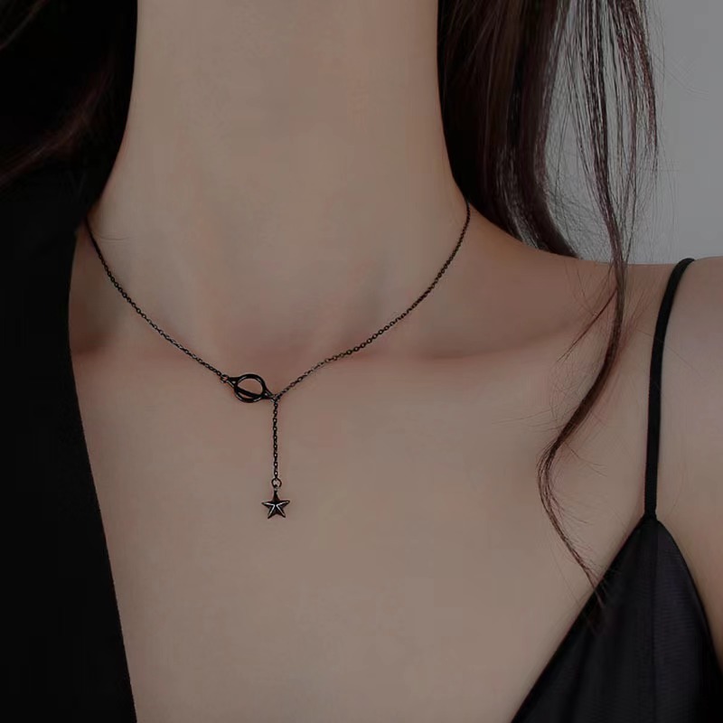 Japanese and Korean simple dark planet necklace Girls cool niche design sense clavicle chain simple cold style neck necklace