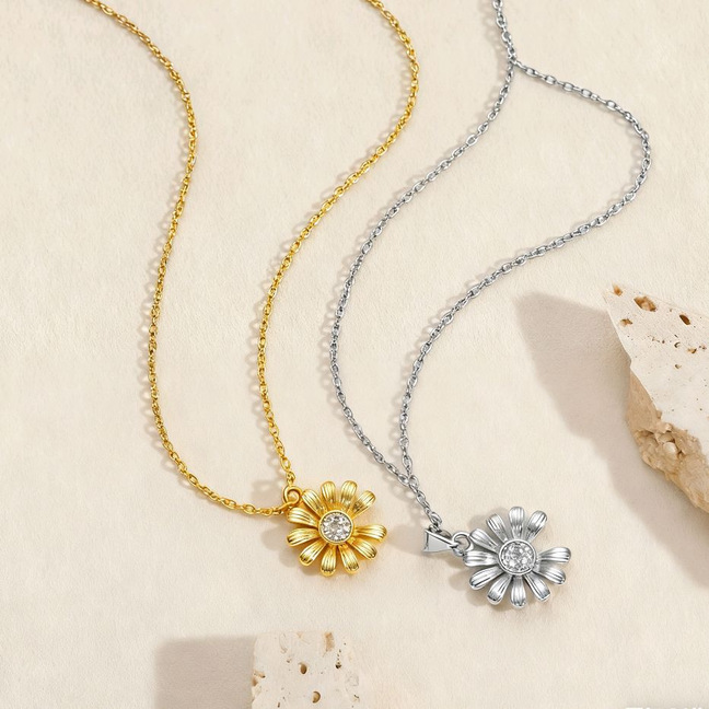 Fashionable and Popular Exquisite and Sweet Diamond-Encrusted Daisy Necklace, Feminine, High-End, Girly Heart, Clavicle Chain Jewelry