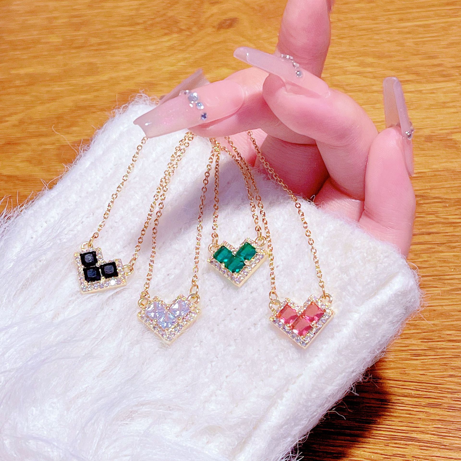 French-Style Light Luxury High-End Super Shiny Heart Micro-Inlaid Necklace for Women, Fashionable Versatile Sweet Romantic Heart-Shaped Collarbone Chain