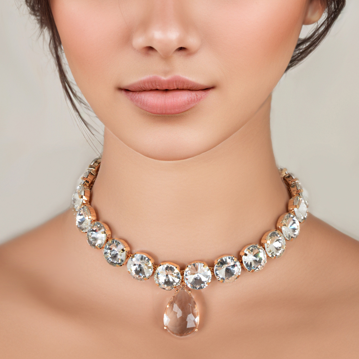 New European and American Fashion Crystal Necklace Women's Versatile Drop-Shaped Necklace Exaggerated Jewelry Jewelry Drop Shipping