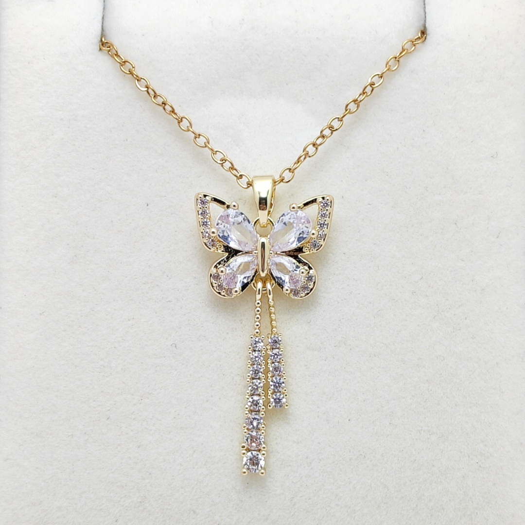 [Titanium Steel] Tassel Butterfly Light Luxury Fashion Casual Hollow Exquisite Necklace Women's Easiest for Match Collarbone Chain Pendant