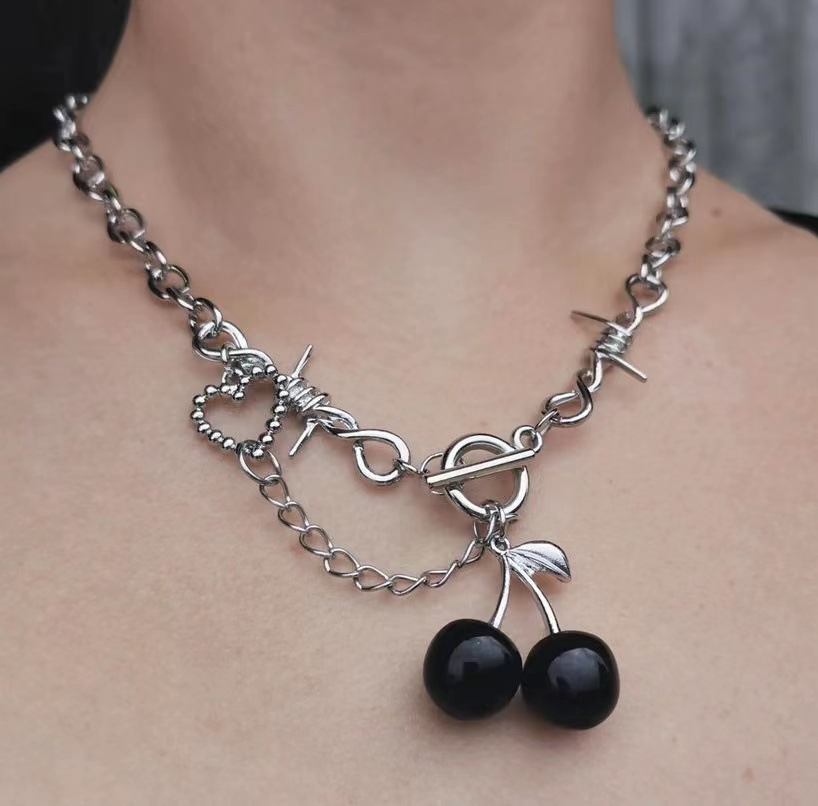 Hot girl bi black cherry Thorn clavicle chain dark girl otbuckle necklace Amazon Cherry necklace