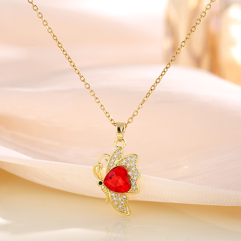 Cross-Border Light Luxury Micro-Inlaid Zircon Butterfly Necklace Women's Versatile Design Heart-Shaped Clavicle Chain Accessories Jewelry Wholesale