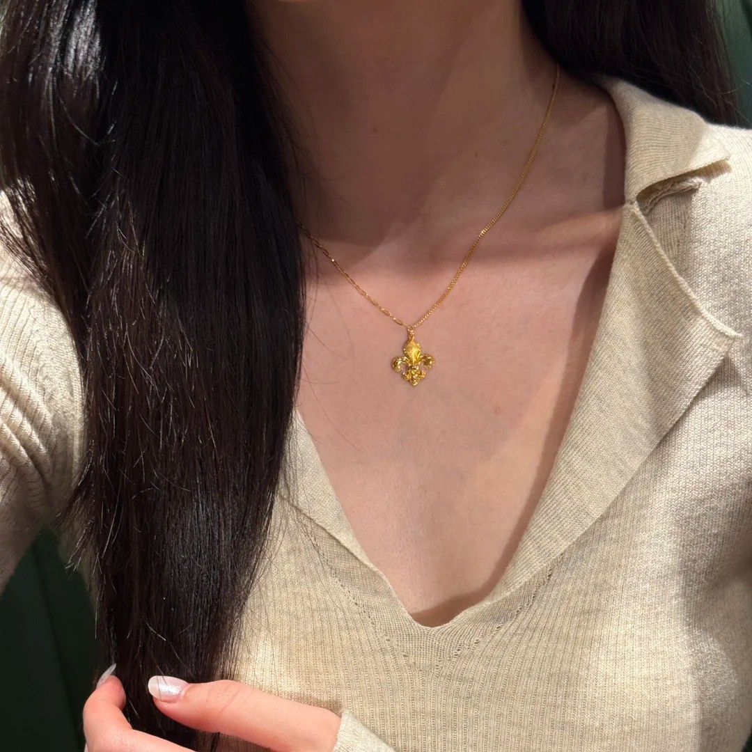 Trendy Little Red Book Brushed Iris Flower Necklace Autumn and Winter Collarbone Chain Elegant Young Lady Vintage Pendant