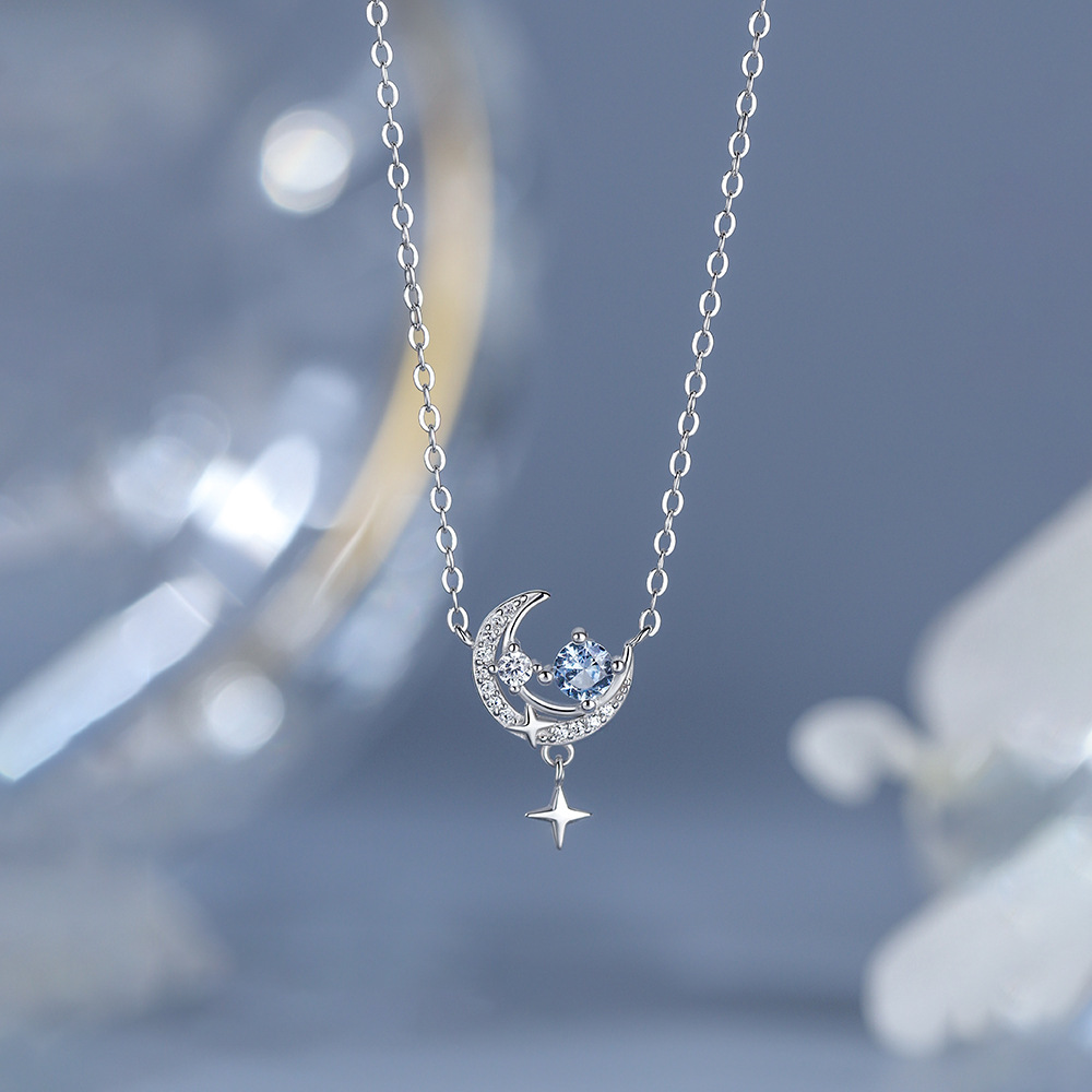 S925 Silver Star Moon Necklace for Women, Light Luxury New Star Moon Pendant, High-End Clavicle Chain, Niche Design Choker
