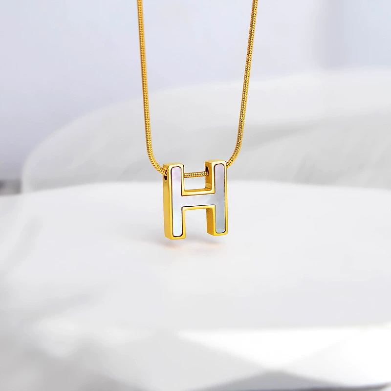 European and American fashion three-dimensional white shellfish H titanium steel necklace girls niche design high-end clavicle chain light luxury trendy jewelry