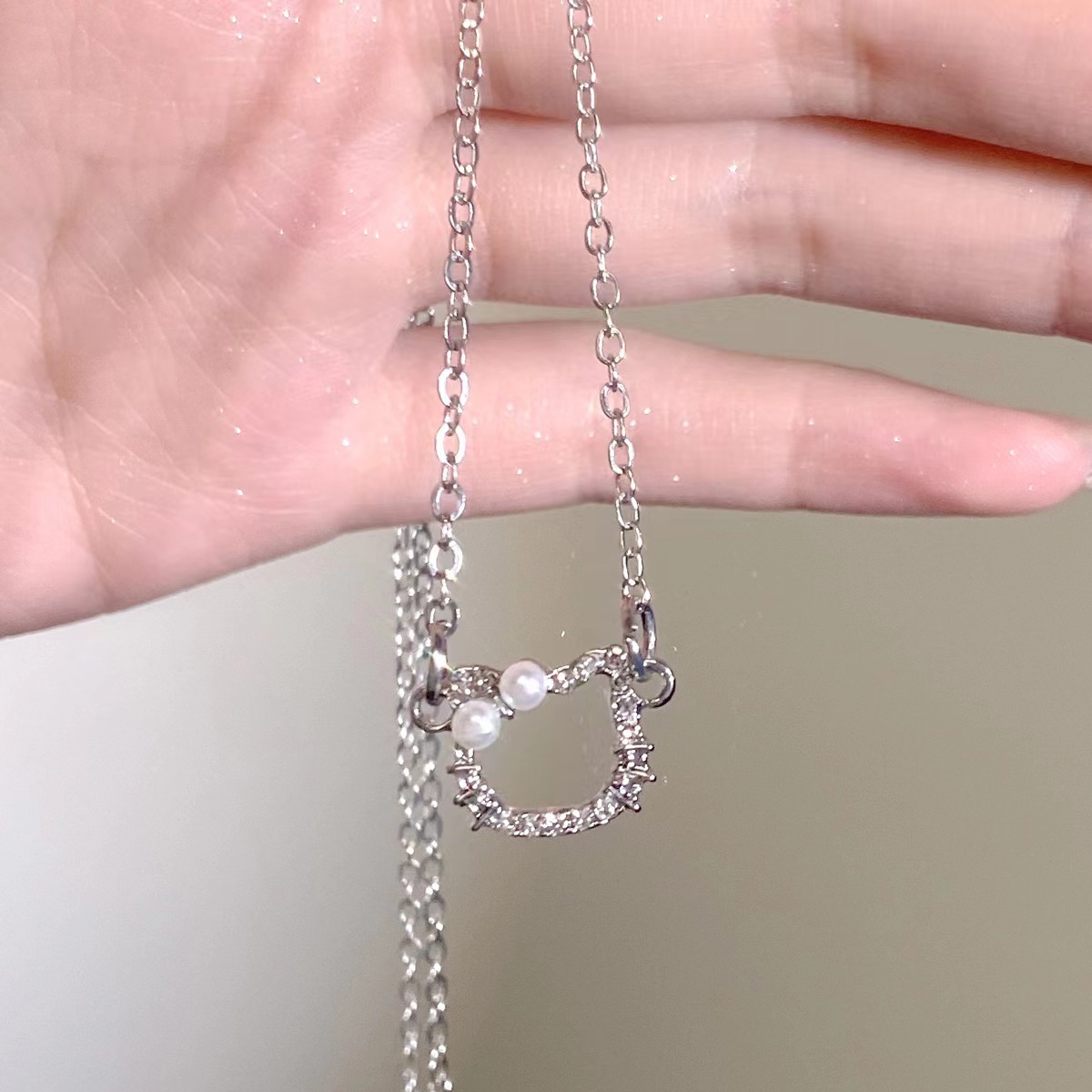 Flash Diamond hellokitty Hello Kitty necklace cute girl light luxury high-grade KT cat pearl pendant clavicle chain