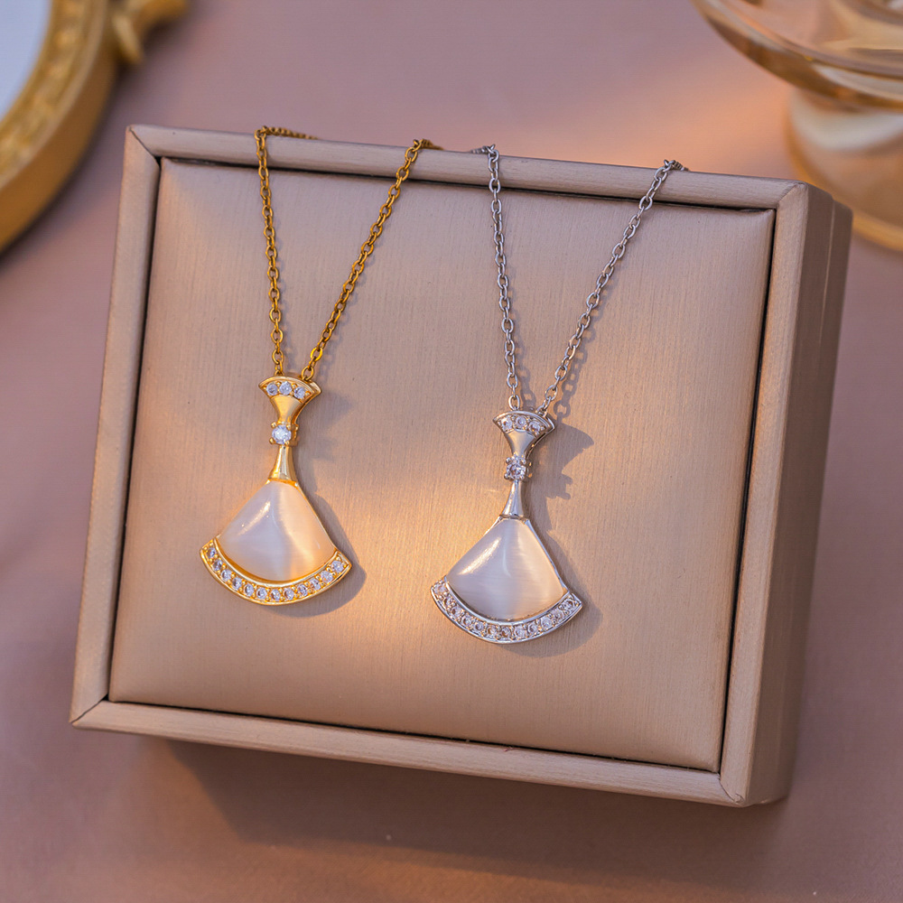 High-Looking and Exquisite Cat's Eye Stone Skirt, Fan-Shaped Diamond-Encrusted Micro-Encrusted Necklace for Girls, Light and Luxurious New Style Clavicle Chain
