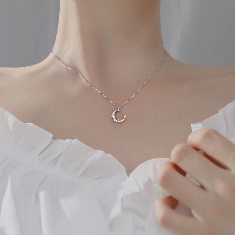 Moon necklace ins student light luxury niche advanced simple cold style sterling silver clavicle birthday gift for girls