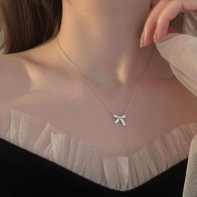 Bow Necklace Pendant Girl's Heart Small Fresh Diamond-encrusted Clavicle Chain Gift Niche Design All-match Necklace