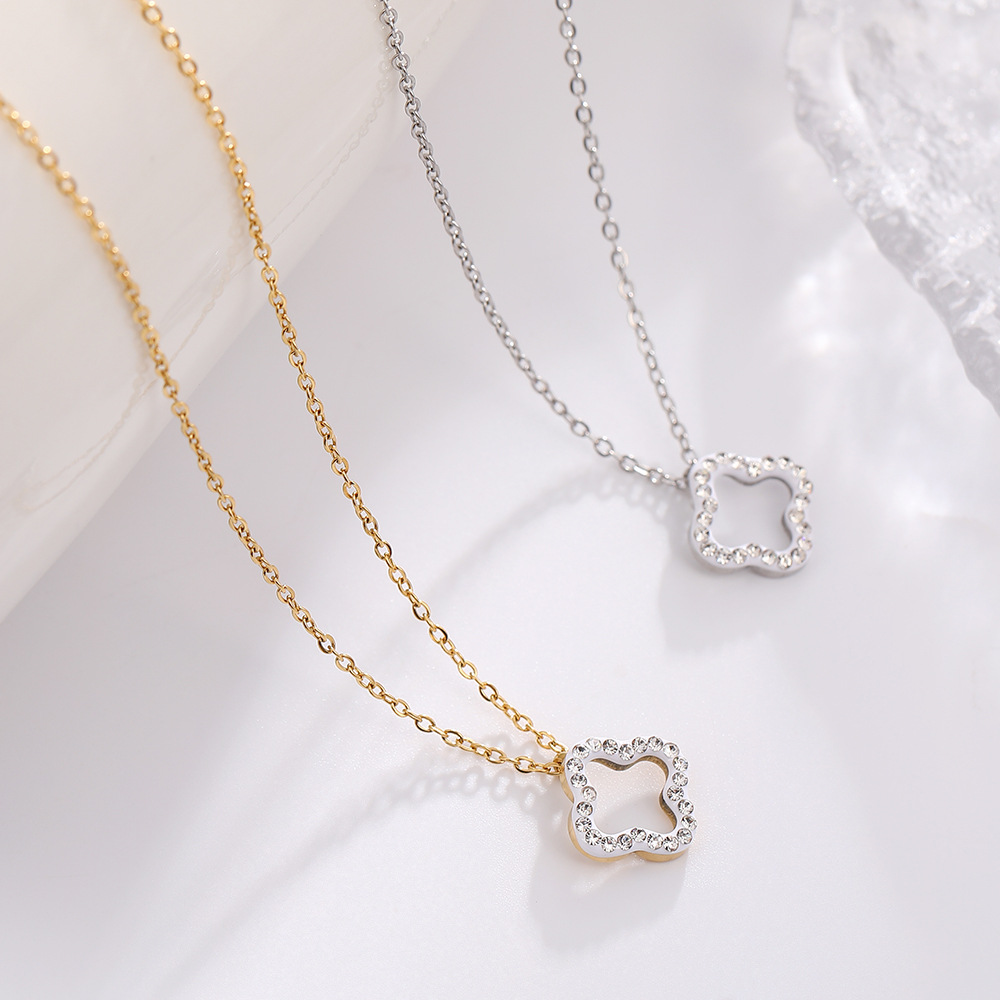 Simple Hollow-out Four-leaf Clover Necklace Ins Cold Style Full Diamond Pendant Necklace Women's Fashion Trendy All-match Clavicle Chain
