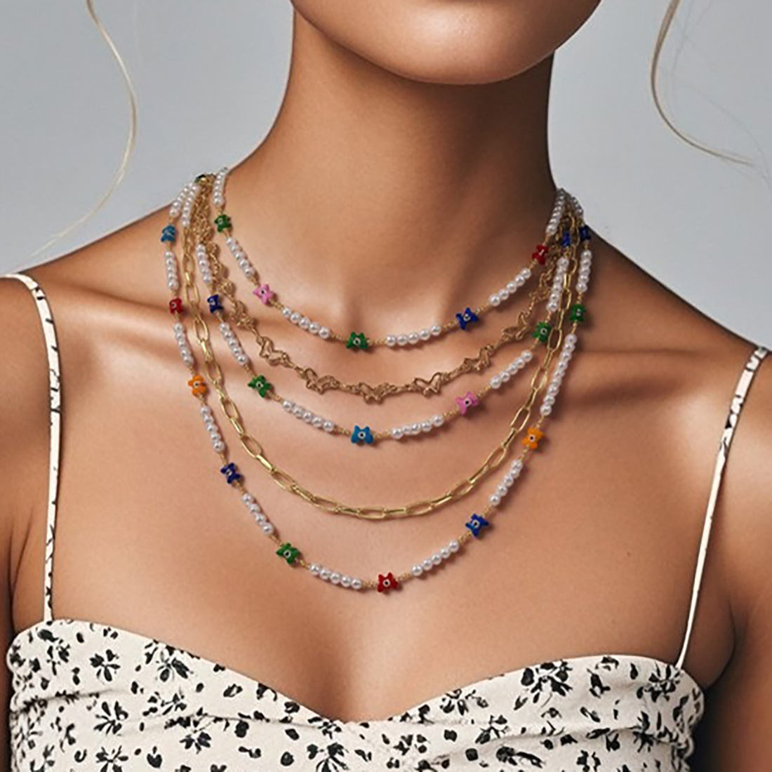 Fashionable Simple Trendy ins Chain Chain Chain Pearl Butterfly Distinctive Creative Cute Necklace Women's 20780