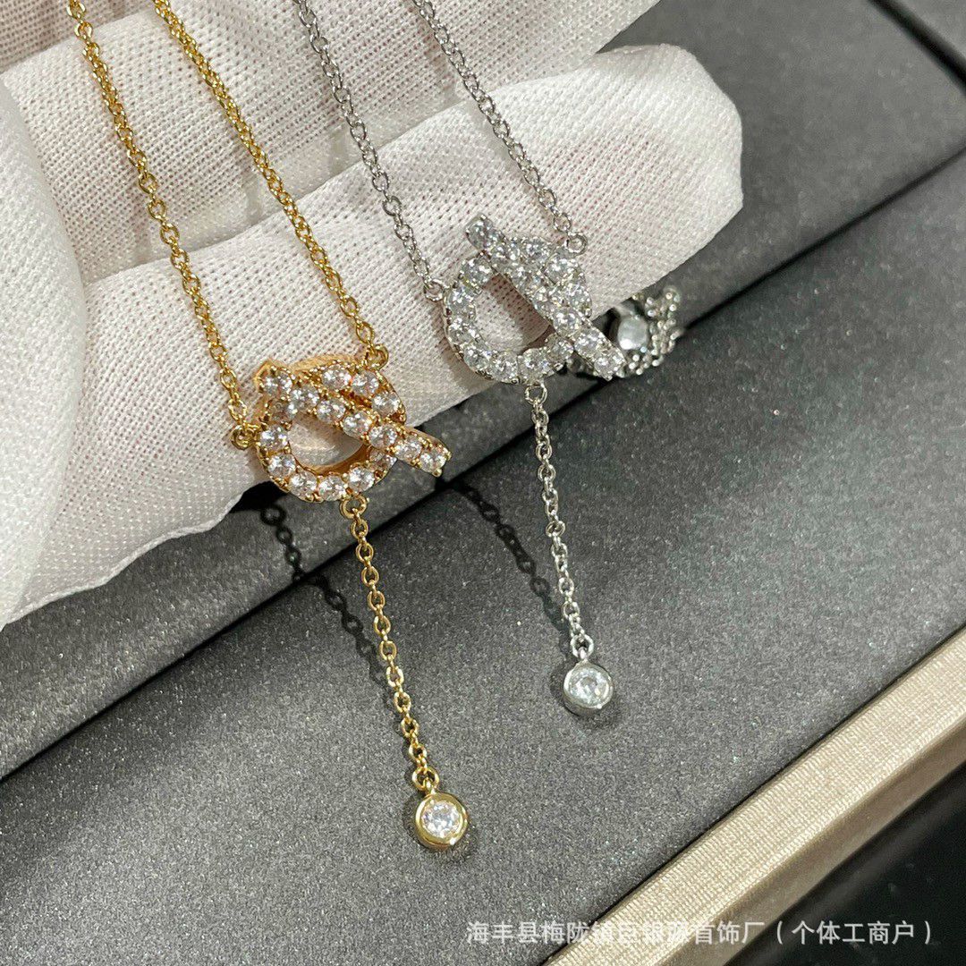 Aimajia Q-Shaped Full Diamond Tassel Necklace Women's Trendyy Fashionable Elegant V Gold Pig Nose Pendant High-End Clavicle Chain