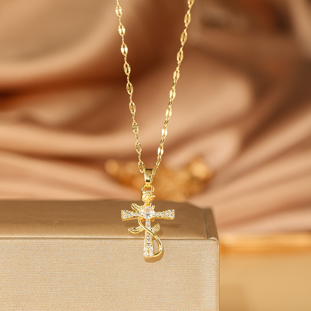 S925 Sterling Silver Cross Diamond Necklace Fashion Trendy Stylish Simple Versatile Necklace Women Factory Direct Sale Women