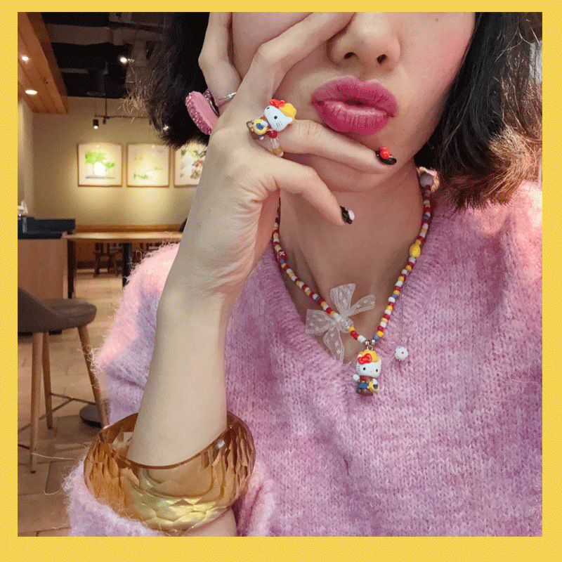Fashion Handmade Necklace Cute Cartoon Trend KT Hello Kitty Short Necklace Necklace Women Sweet Cool Niche Color