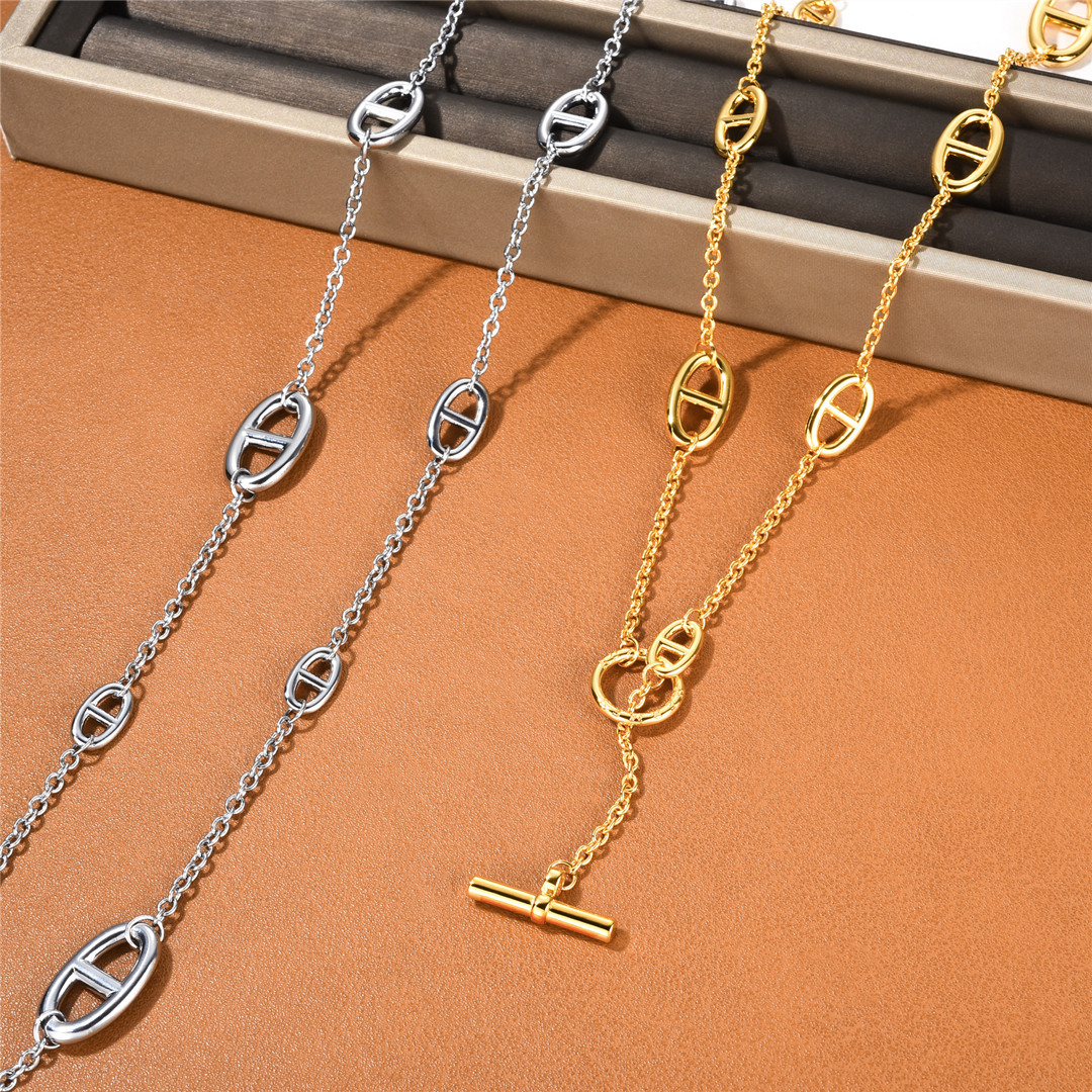 European and American New High-end Sense Pig Nose Long Stacked Ot Buckle Clavicle Chain Fashion Street Fashionable Elegant Necklace for Women