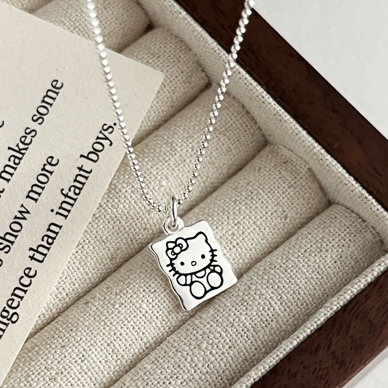 925 Sterling Silver Square Cat Necklace for Women Bright Silver Simple Cute Sweet Cartoon Childlike Clavicle Chain N7733