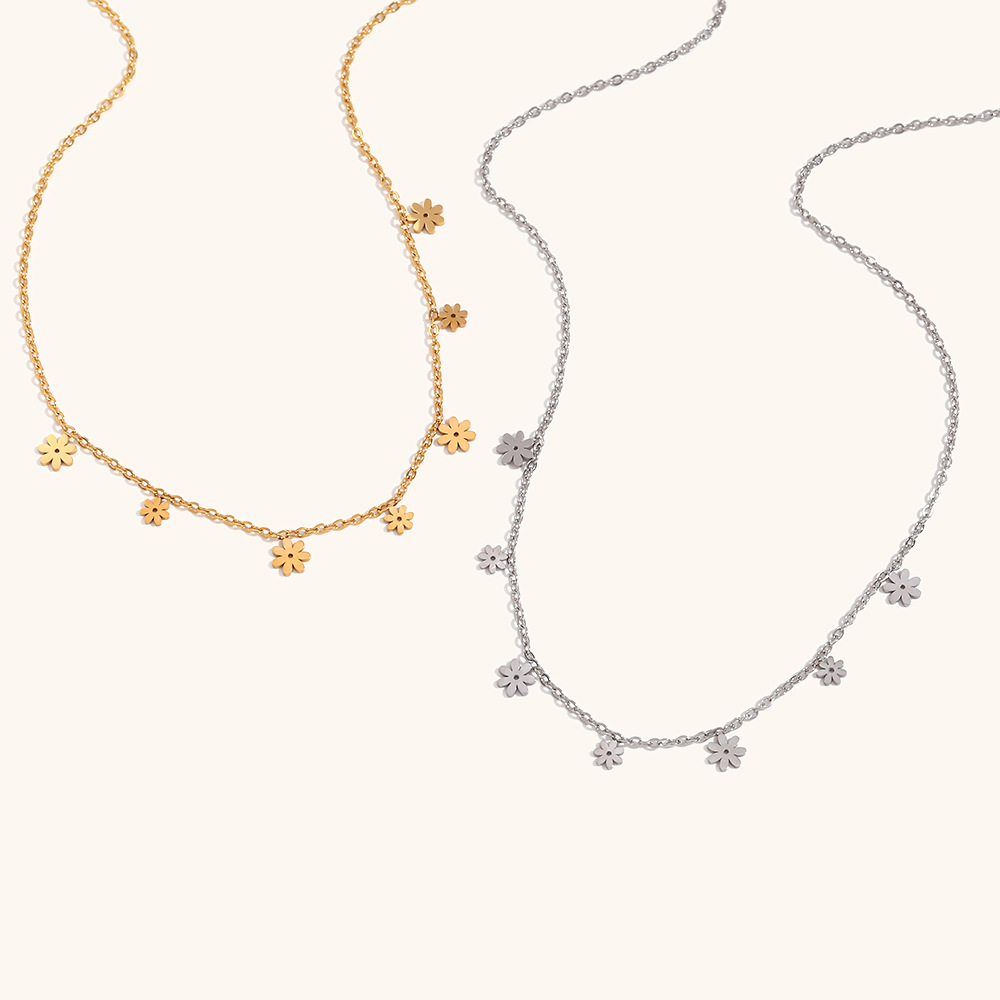 European and American Cross-border Fashion High-end Sense Jewelry Stainless Steel 18K Gold Plated Mini Daisy Flower Necklace for Women
