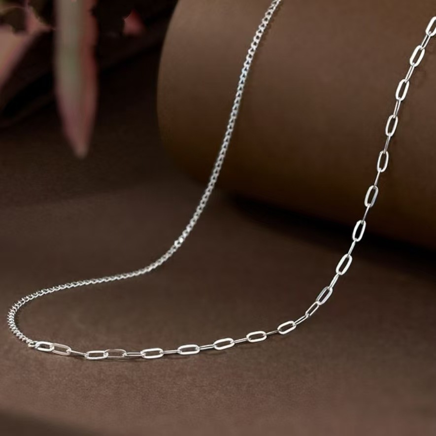 925 Sterling Silver Necklace for Women, Silver Chain, Copper Gold-Plated Chain, Clavicle Chain Accessories, Bare Chain Wholesale, Trendy Clavicle Chain