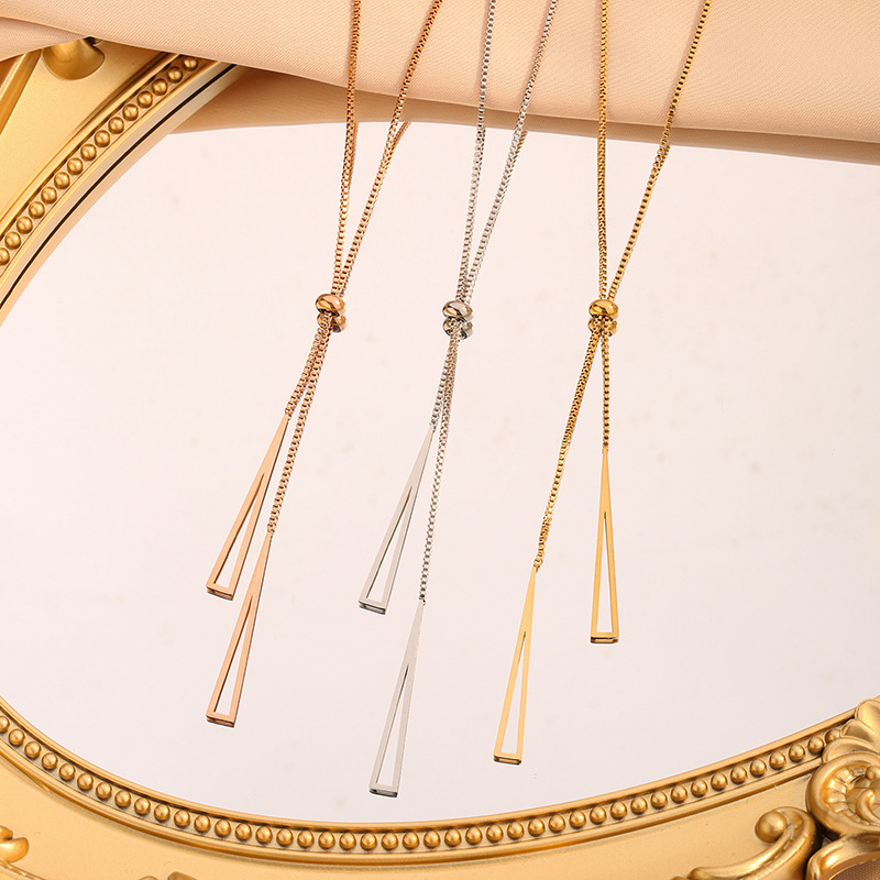 Korean Style Hot-Selling Triangular Tassel Pull-Out Stainless Steel Necklace for Women, Light Luxury Versatile Trendy Necklace, Adjustable Accessory