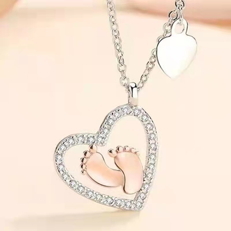 High-end heart-shaped necklace color classification baby footprints pure female pendant clavicle love footprint luxury