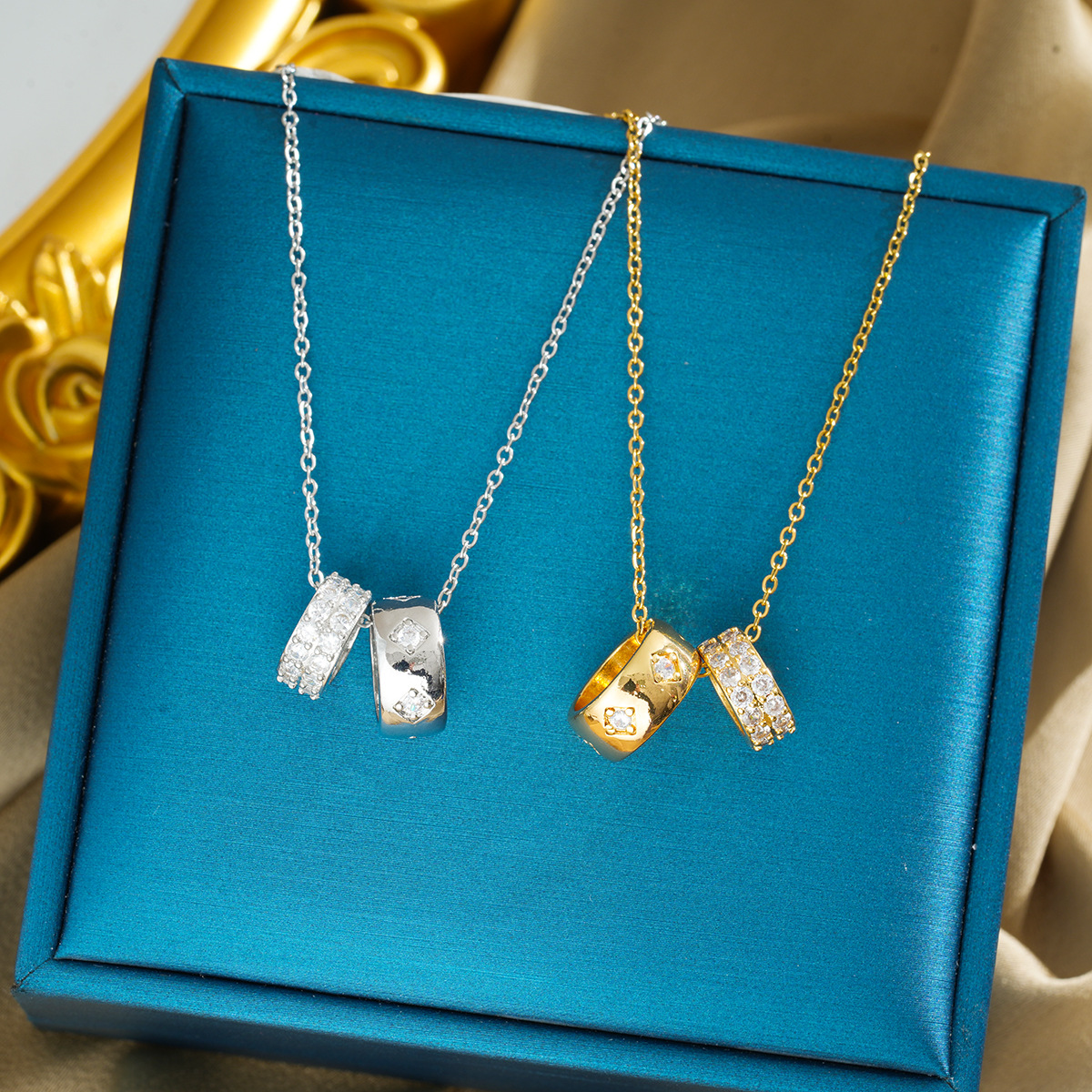 Cross-Border Sexy Double-Ring Full Diamond Big Waist Titanium Steel Necklace Women's Clavicle Chain Small Fresh and Cute Versatile Trendy Wholesale