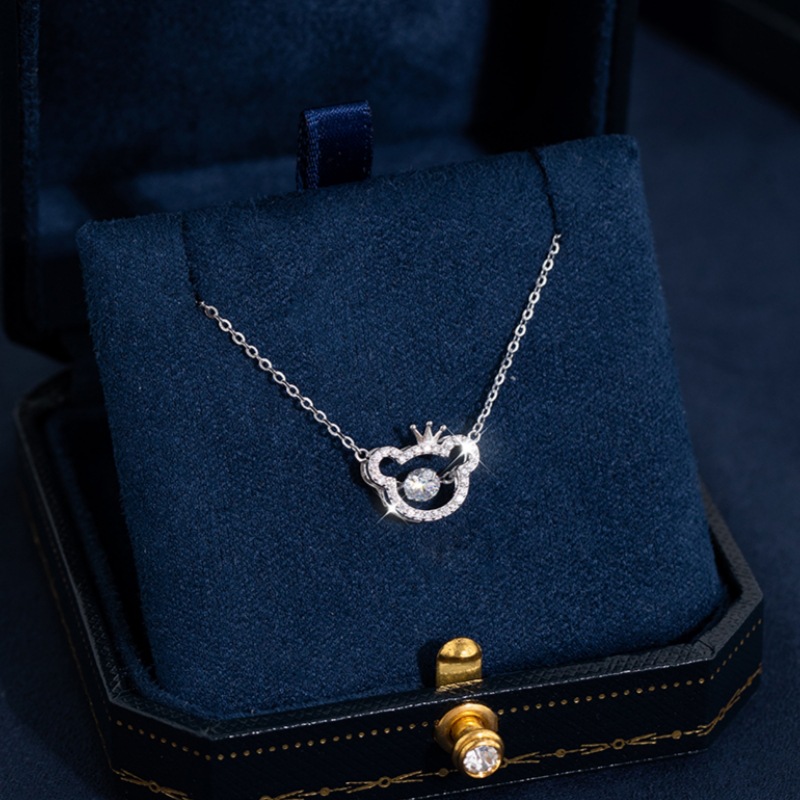 S925 Sterling Silver Beating Heart Accessories Cute High-end Crown Bear Smart Necklace Simple Fashion All-match Women