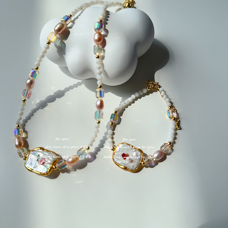 Rose French Natural Baroque Pearl Flower Necklace for Women, Elegant Gilded Romantic Collarbone Chain