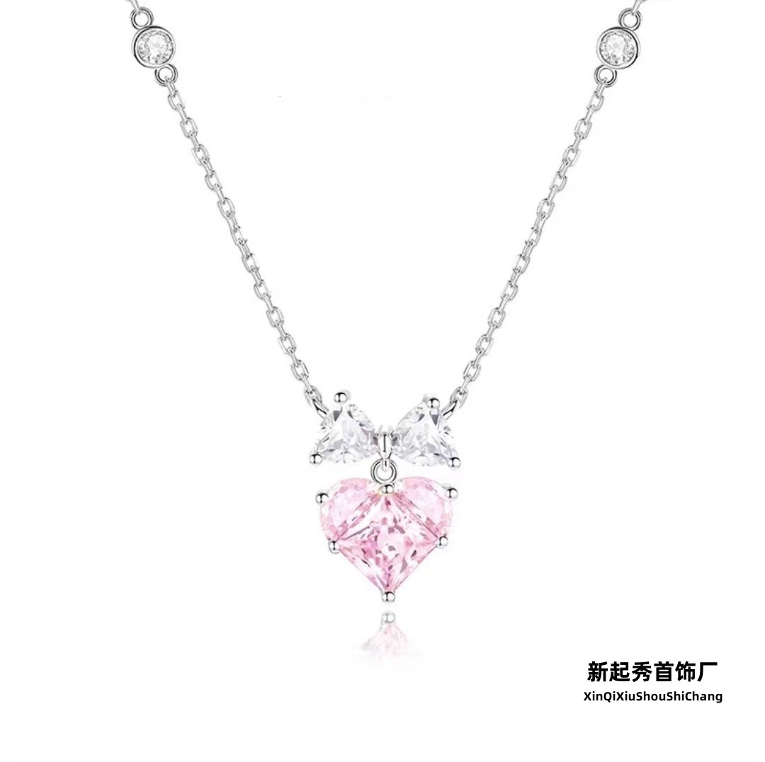 Shijia 1:1 Replica Pink Girly Cat Necklace for Women Swarovski Cute Playful Kt Cat Collarbone Chain Wholesale