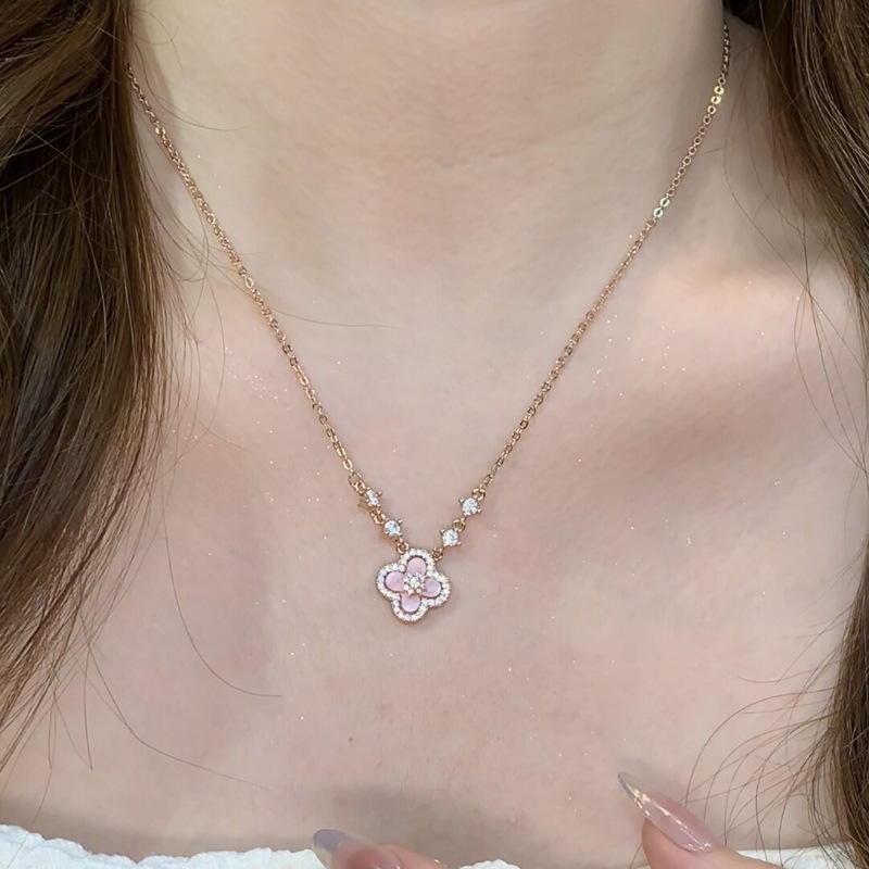 Four-Leaf Clover Necklace for Women 2025 New Model Super Shiny Zircon Ins Sweet Pendant Light Luxury High-End Clavicle Chain Wholesale