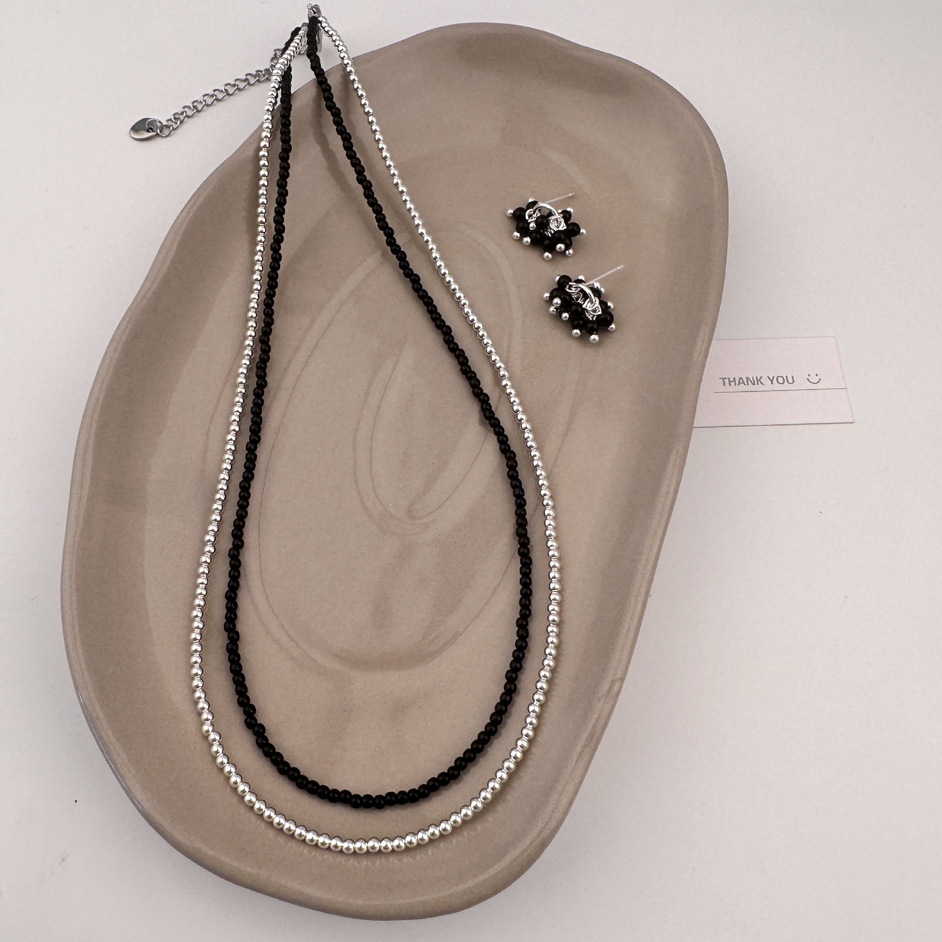 Double Layer Vintage Natural Stone Beaded Necklace Female Girly Sweet Cute Temperament All-match Distinctive Necklace Clavicle Chain