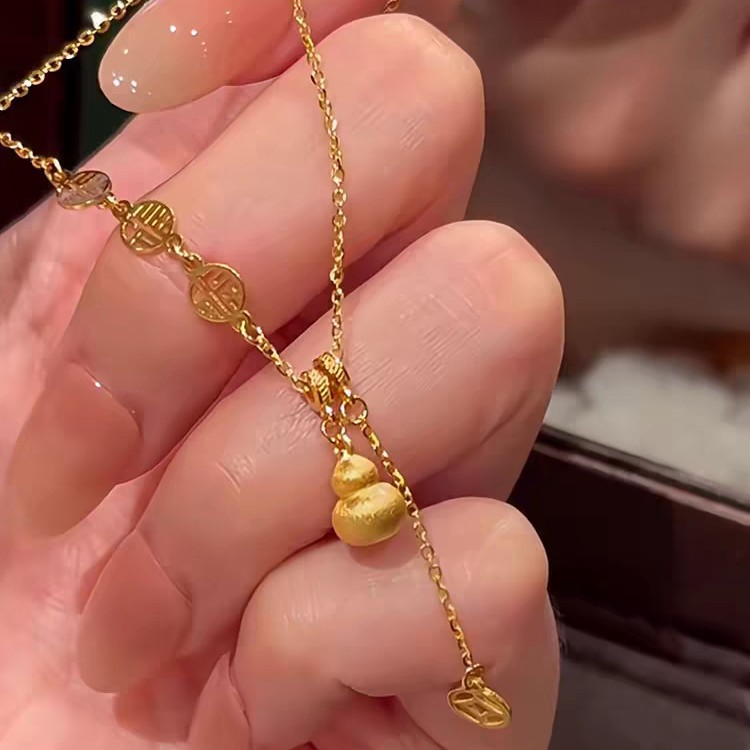 New Chinese-Style Brushed Gourd Tassel Necklace for Girls with Blessing Character Pendant, High-End Jewelry Similar to Those Sold in Gold Stores