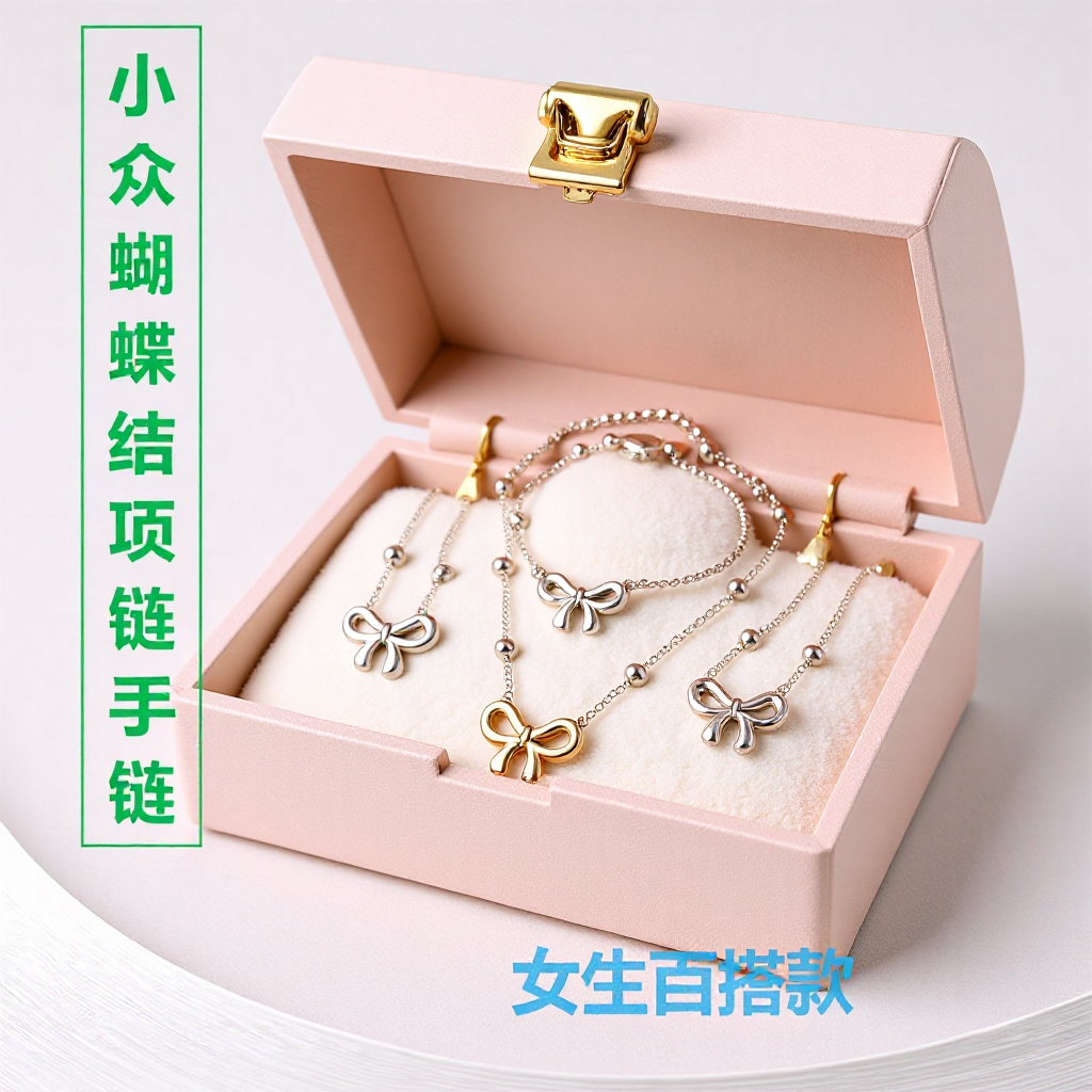"Star Butterfly" Sweet Pink Bow Heart Necklace Women's High-End Design Niche Clavicle Necklace