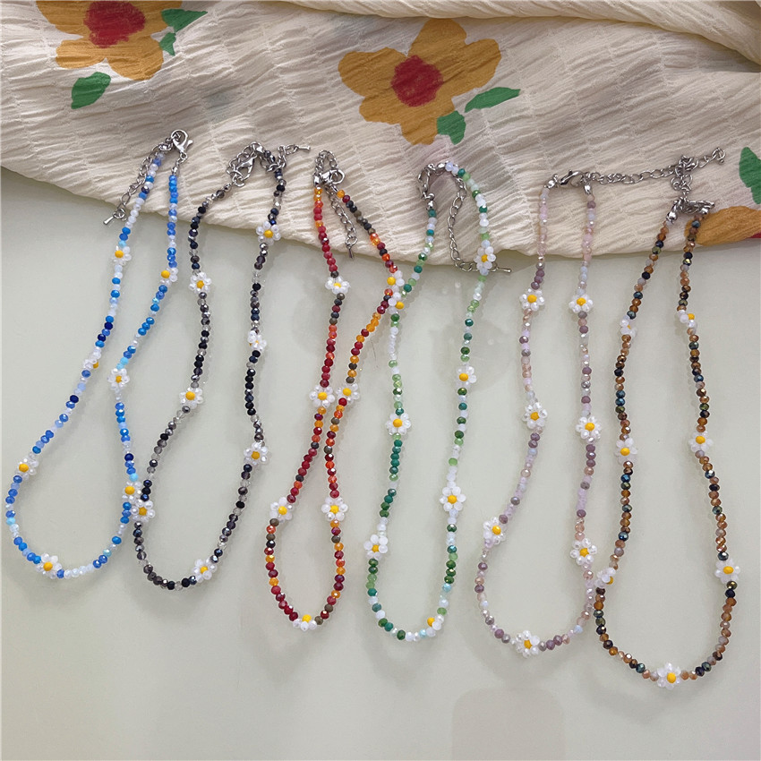 Korean Vintage Color Crystal Necklace Korean Style INS Style Candy Small Wrinkle Chrysanthemum Necklace Cute Sweet Flower Necklace