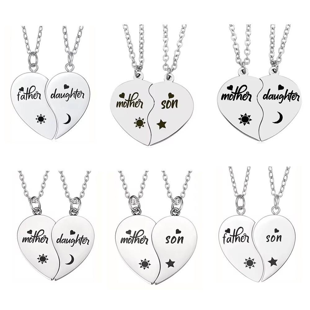 Amazon Hot Selling Mother Necklace Mother Daughter/Son Heart Pendant Stainless Steel Two Half Heart Necklace