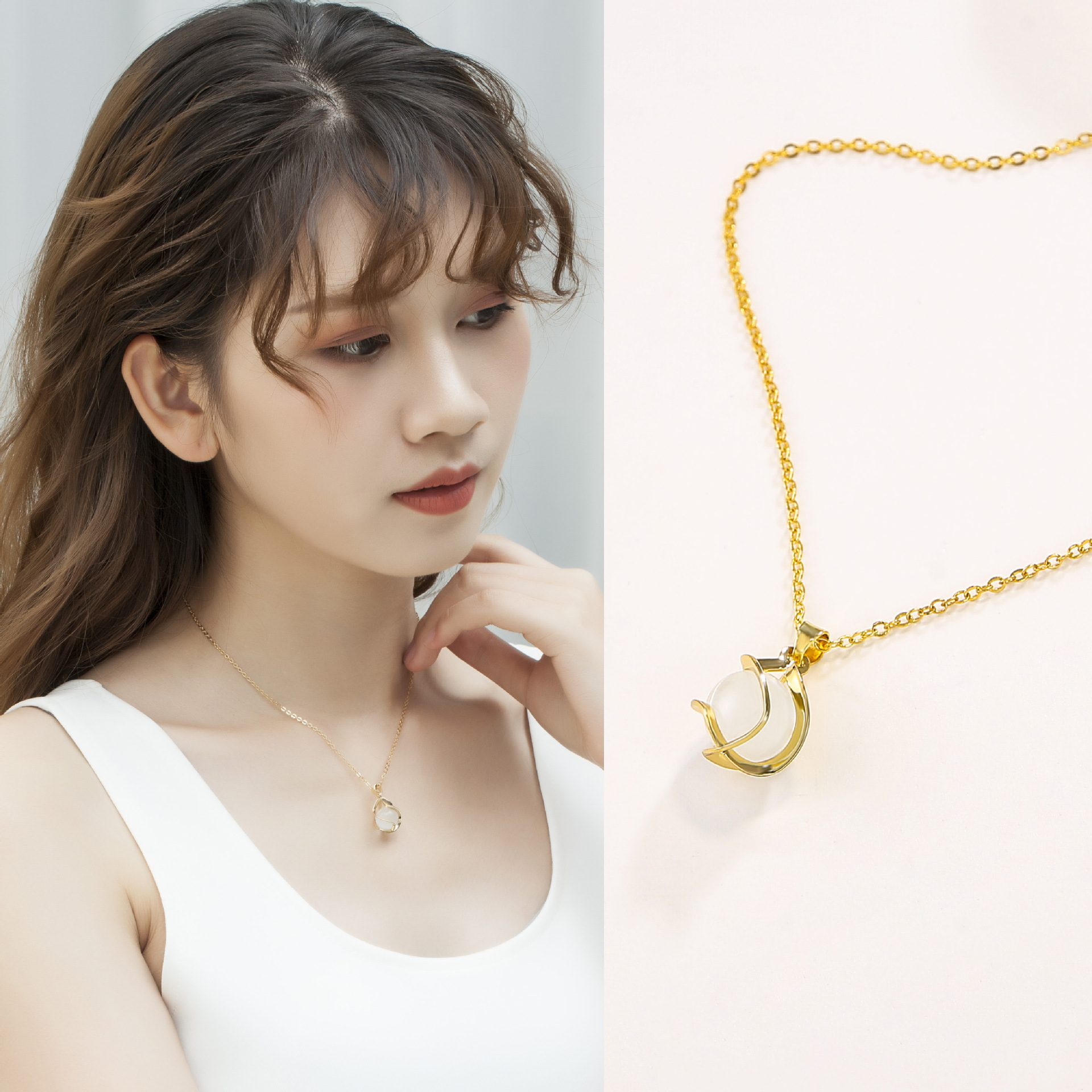 Silver Girl Irregular Metal Pendant with Pearl Necklace Korean Women's Short All-match Clavicle Chain Jewelry