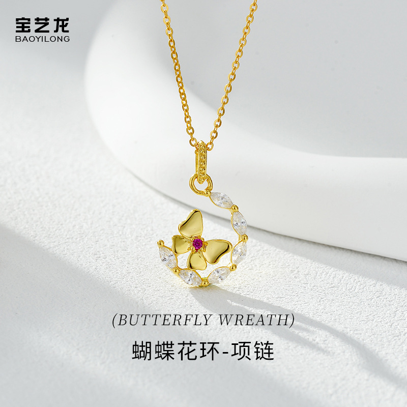 Butterfly Garland Necklace for Women S925 Sterling Silver Fresh and Sweet Pastoral Style Accessible Luxury High-End Diamond Pendant Clavicle Chain