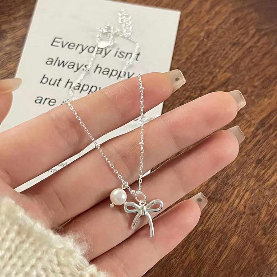 Bow Pearl Necklace Women's Korean Style All-match Fashion Light Luxury Sweet Collarbone Chain Wholesale Tanabata Gift Jewelry