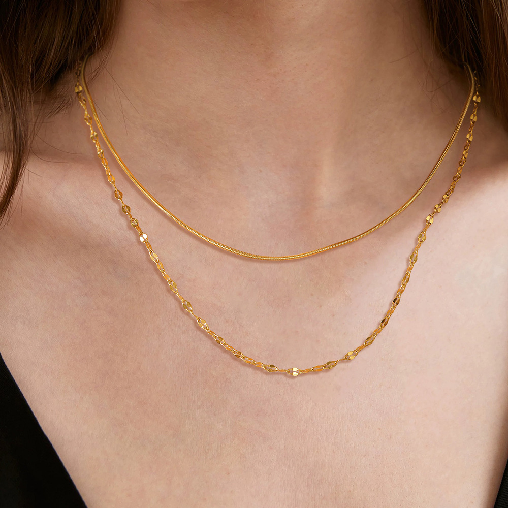 Japanese and Korean-style Niche Simple Snake Bone Chain Spiral Blade Chain Double-layer Necklace Sweet Cool Style All-match Girl's Clavicle Chain