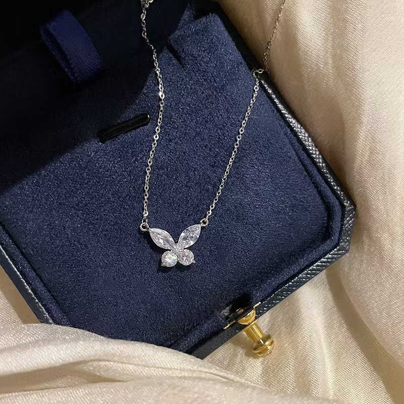 New Style Light Luxury Full Zirconium Ring Butterfly Pendant Titanium Steel Necklace Niche High-End Women's Clavicle Chain Wholesale