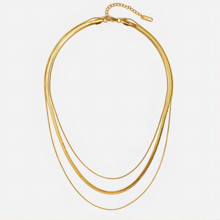 European and American Ins Style Light Luxury 18K Golden Round Snake Stainless Steel Stacked Double Neck Chain Sweet Snake Bone Chain Necklace for Women
