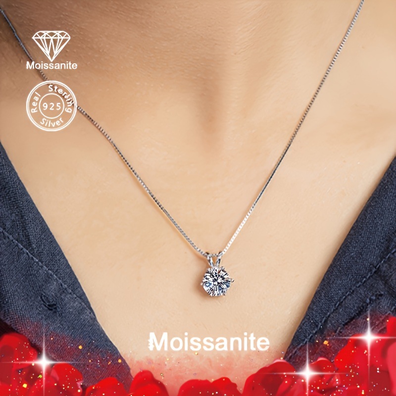 Temu Popular Anti-Moissanite Necklace for Women, High-End Single Diamond Six-Claw Pendant, Clavicle Chain, Silver Jewelry Gift, Douyin Direct