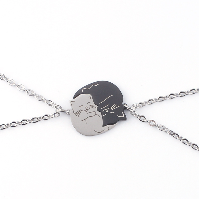 Europe and the United States cross-border men's necklace creative cartoon black and white cat stainless steel pendant cute couple jewelry wholesale women