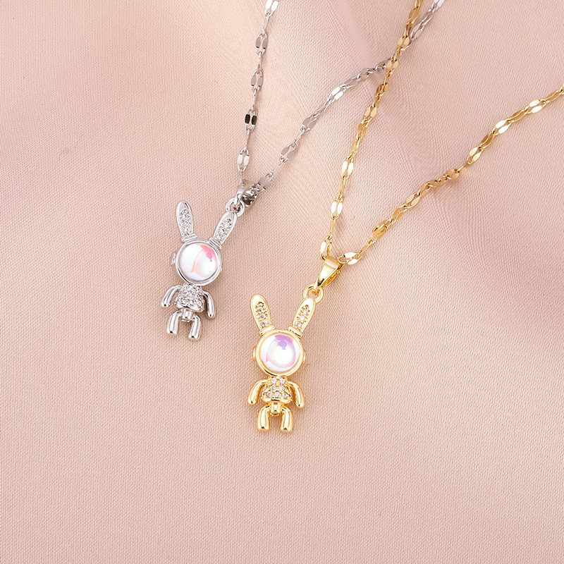 Non-Fading Micro-Paved Zircon Mechanical Rabbit Cross-Border Hot-Selling Titanium Steel Necklace Women's Fashion Trend Personalized Niche High-End