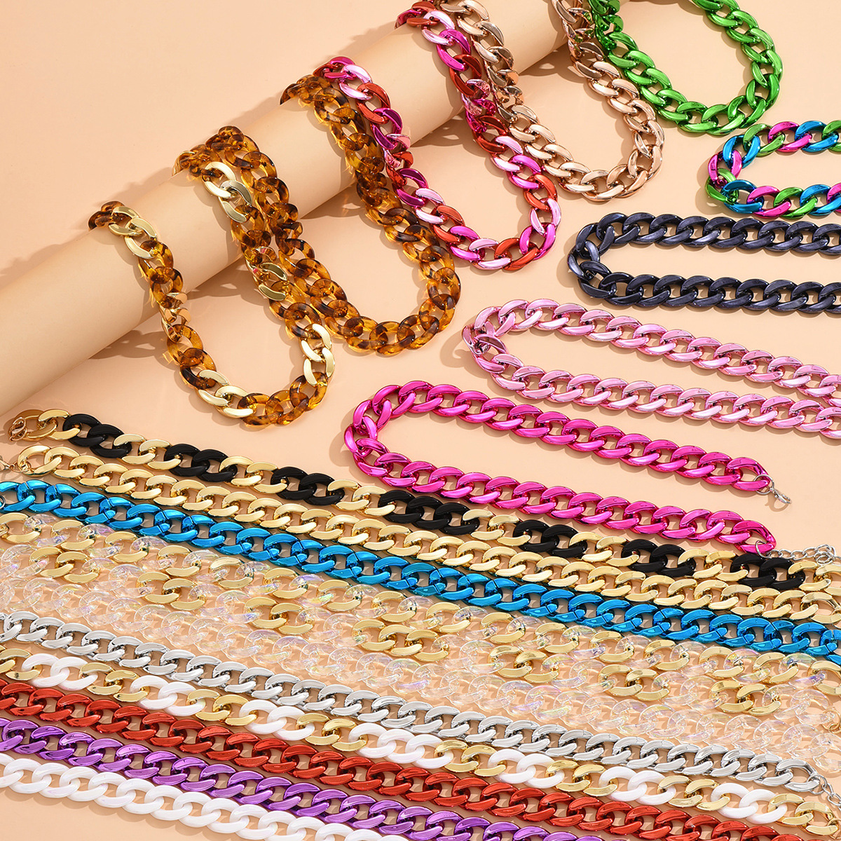 European and American Acrylic Contrasting Color Splicing Necklace, French Niche Style, Elegant and Sweet Ins-Style Women's Necklace Jewelry