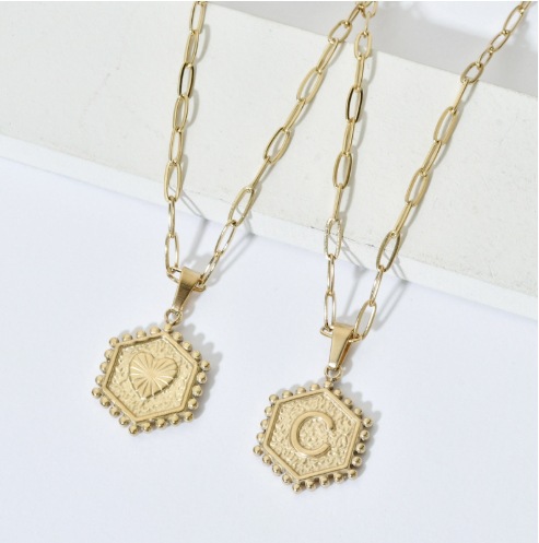 European and American Cross-Border Multi-Layered 26-Letter Pendant Necklace Hexagonal Trendyy Versatile Women's Clavicle Necklace Amazon